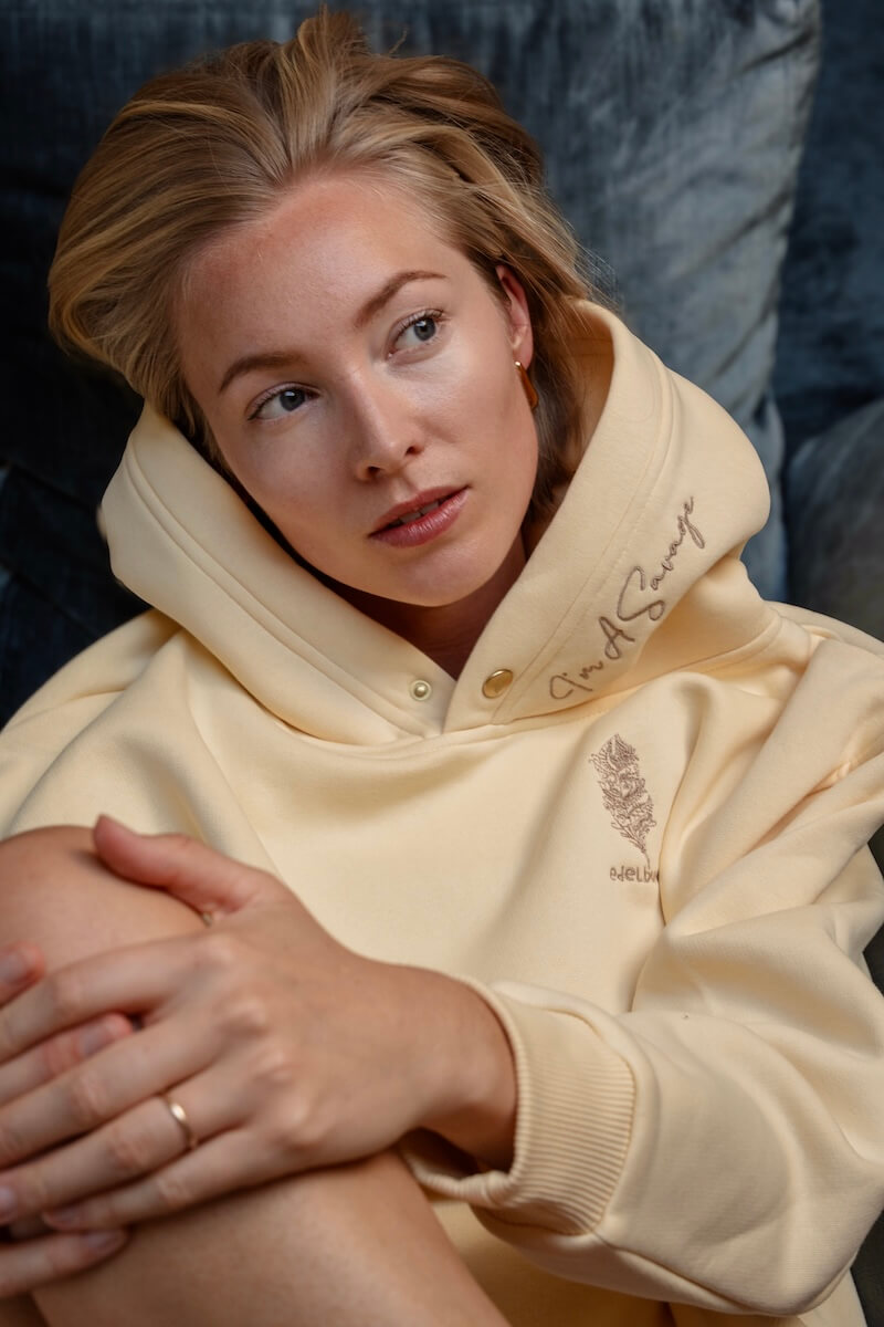 Unser Hoodie Vienna überzeugt durch seinen warmen und stilvollen Vanille-Ton.